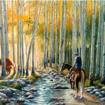 His preference has always been working with oils on canvas, painting horses and farm life into landscapes of the mountains and prairies where he was raised.